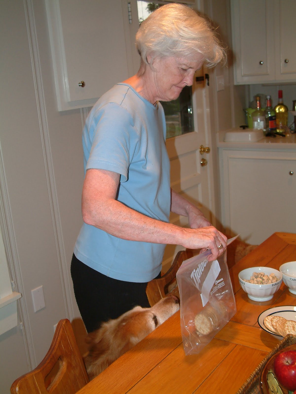 As you well know, we Goldens love the pamperin, so we kinda swarm him sayin "me first me first"... so allow me to introduce and identify who you see below!