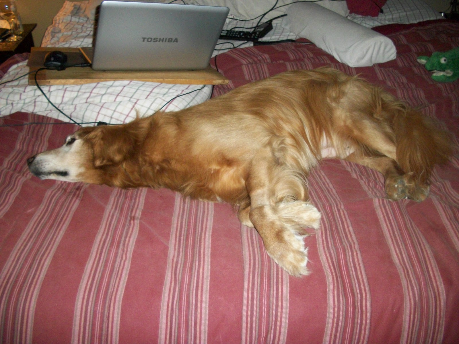 And gosh you're good, on a counta I was served the most delicious half order of dinner foods ever known to a golden retriever. I gobbled them up. They had no chance of escapin. No, none whatsoever.And I also foroughly enjoyed an inch of the Miracle Waters. And now here's...